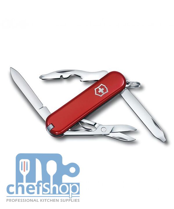 يحتوي على سكين صغيره ، علاقة مفاتيح ، نكاشه ، ملقط ، فتاحة زجاجات ، مفك مصلب ، مبرد اظافر ، مفك صغير ، مقص