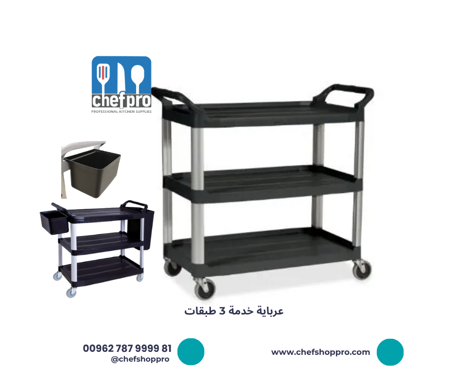 ترولي خدمة 3 طبقات بلاستك و المنيوم