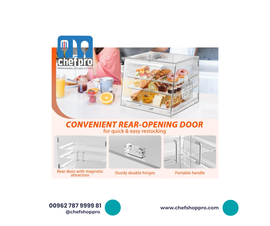 Pastry Display Case, Clear Bread Box, 3-Tier Removable Bakery Case with Bread Tong, Commercial Countertop Cookie Display with Front and Rear Door